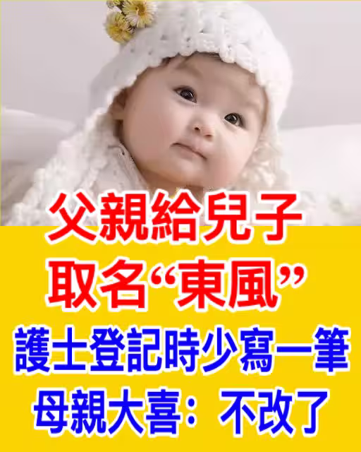 父親給兒子取名「東風」,護士登記時少寫一筆,母親大喜:不改了