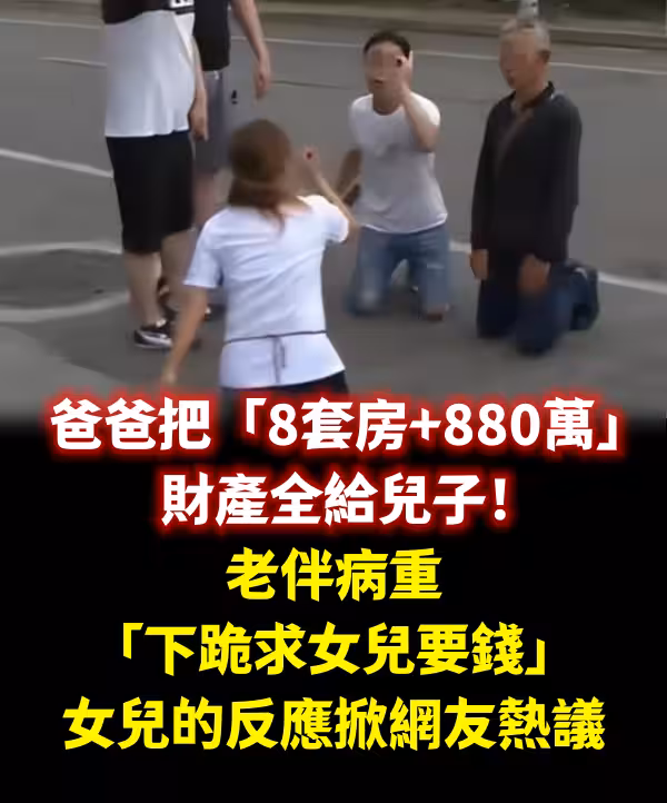 爸爸把「8套房+880萬」 財產全給兒子! 老伴病重「下跪求女兒要錢...」女兒的反應掀網友熱議