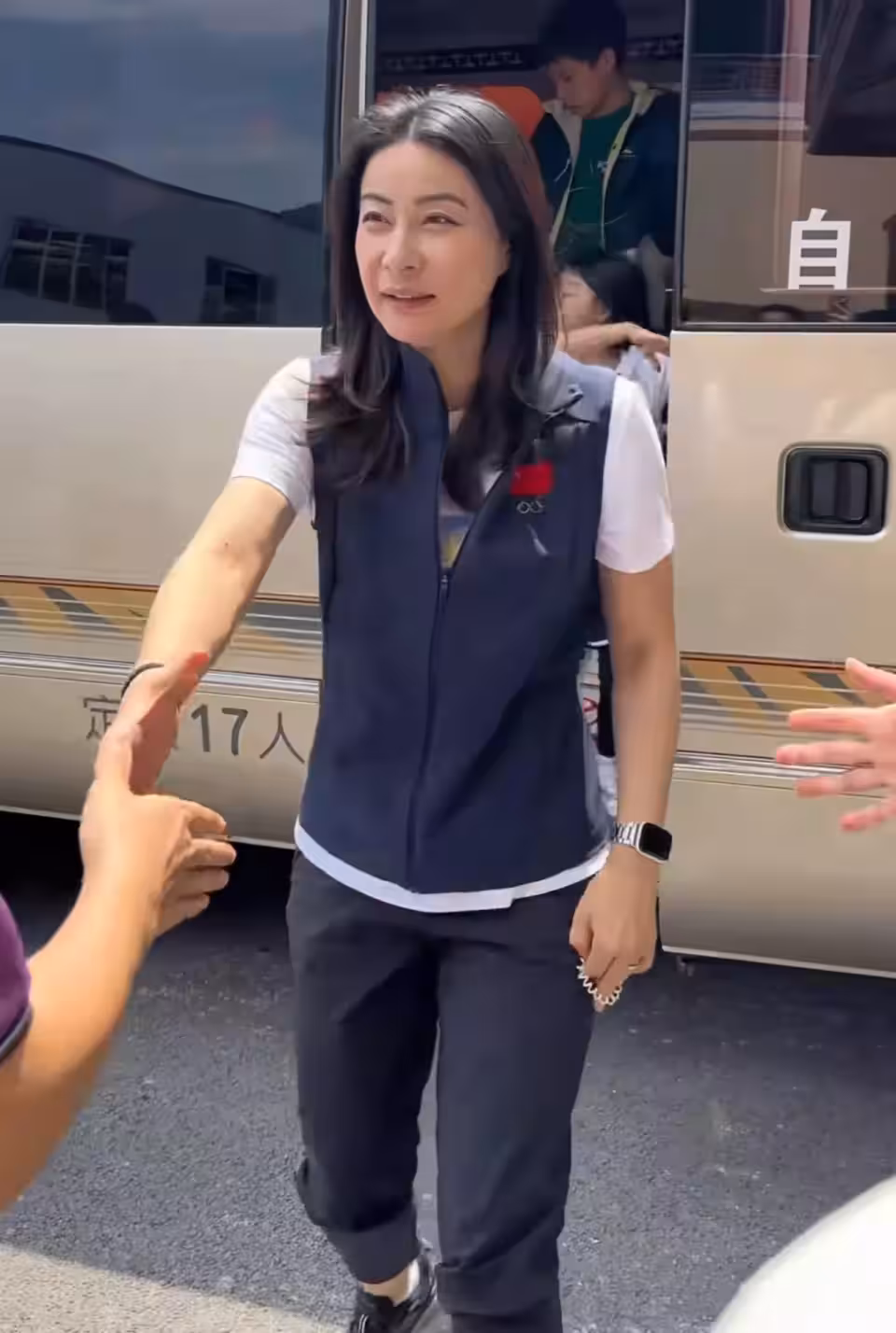 郭晶晶下車後先是和當地接待的工作人員握手了,她身子俯得很低。郭晶晶的眉眼都很溫柔,完全沒有高高在上的感覺,她平和又親切。