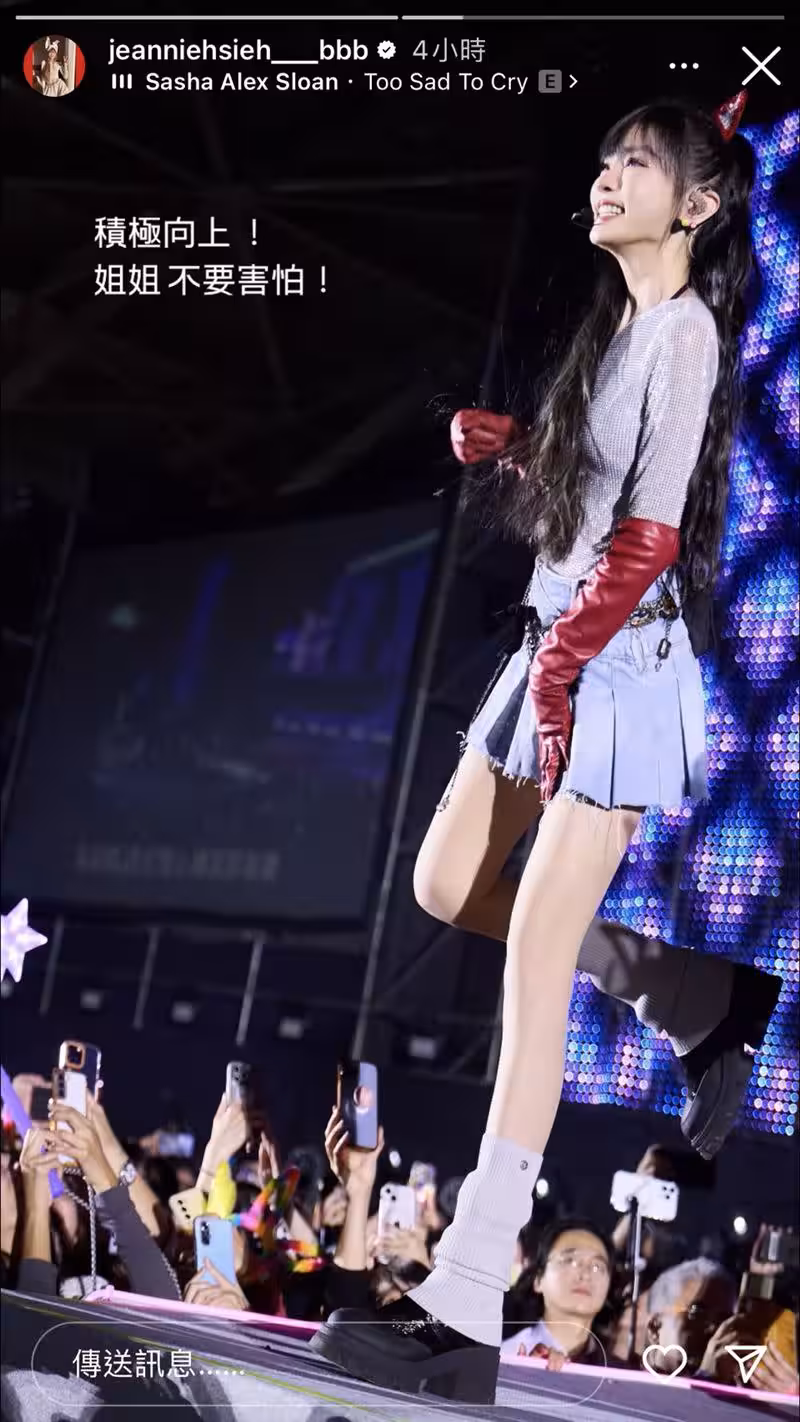 謝金燕發文「姐姐不要害怕!」,並搭配《欲哭無淚》歌曲,疑回應利菁公開兒子生父。(圖/翻攝自謝金燕IG)