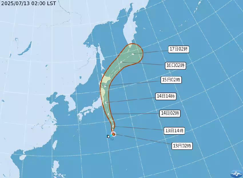輕度颱風「百合」目前位於日本南方海面,中心位置在北緯25.6度、東經142.4度,以每小時26公里速度向北移動,距離台灣超過2000公里。