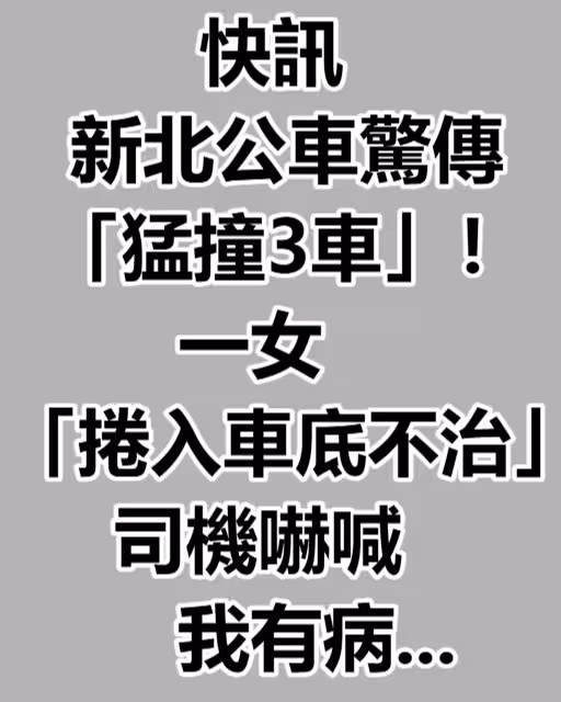 快訊/新北公車驚傳「猛撞3車」!一女「捲入車底不治」司機嚇喊:我有病...
