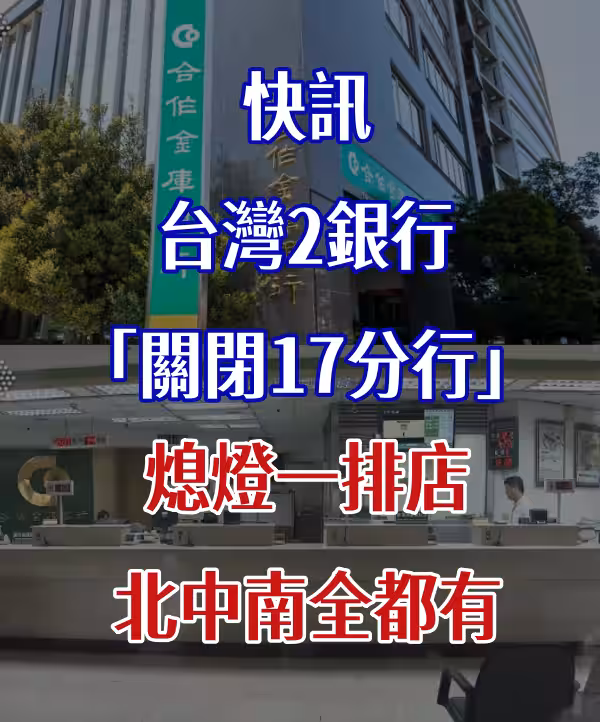 快訊/台灣2銀行「關閉17分行」!熄燈一排店 北中南全都有....