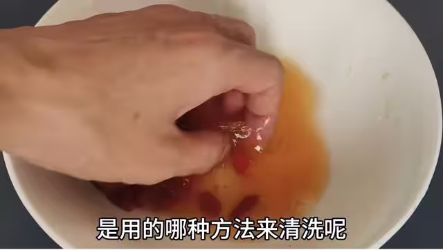 可以看見,稍許抓拌一會兒就非常的髒了,這時候加入水再洗一洗,看一看水到底有多麼的渾濁,平時你們用枸杞或者紅棗的時候,是用的哪種方法來清洗呢,不要告訴我你沒有清洗哦,看過這個洗的過程以後,枸杞和紅棗用的時候,還敢不清洗嗎,然後把洗出來的髒水倒掉,然後再次往碗中加入水,直到清洗枸杞和紅棗的水變得清澈為止。