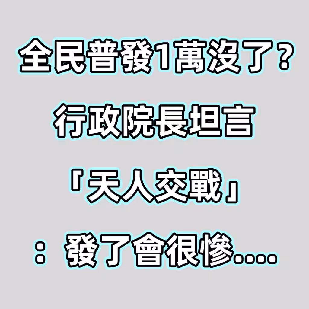 全民普發1萬沒了?行政院長坦言「天人交戰」:發了會很慘....