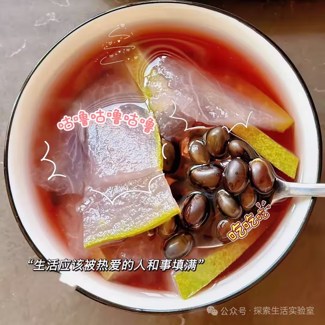 黑豆能壓住濕氣帶來的虛火,冬瓜排水。這湯喝起來清清的,黑豆口感沙沙的,冬瓜軟軟的,一碗下去,胃裡暖暖的,不脹。濕氣重的人常覺得沒勁兒,我老公喝了說,以前下午總犯困,現在喝完這湯,能精神到晚飯前,不打瞌睡了。