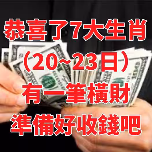 恭喜了7大生肖,在未來三天( 7月20~23日)即將有一筆橫財!準備好收錢吧!!