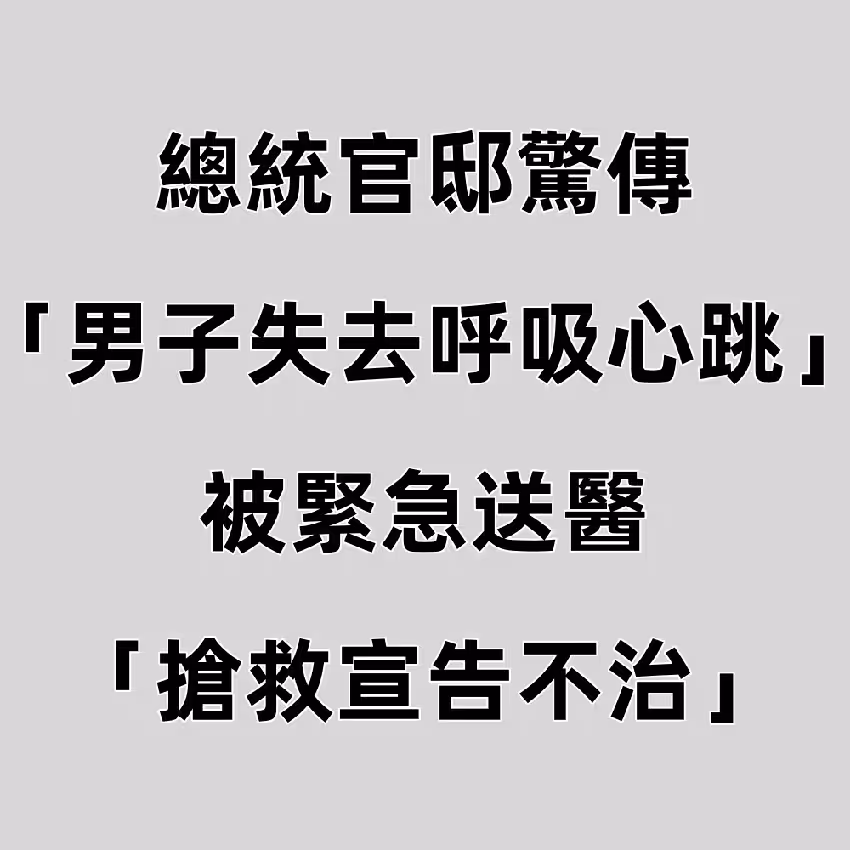總統官邸驚傳「男子失去呼吸心跳」!被緊急送醫「搶救宣告不治」...