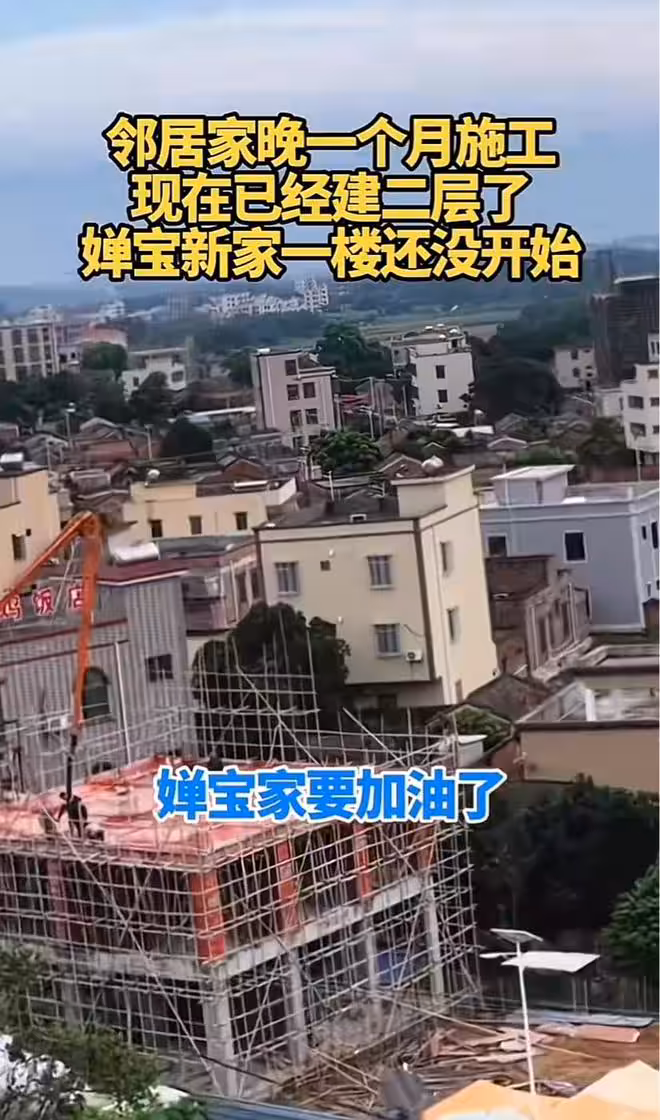 全紅嬋家的新房終於復工,鄰居都開始建二層了,全媽來工地催進度