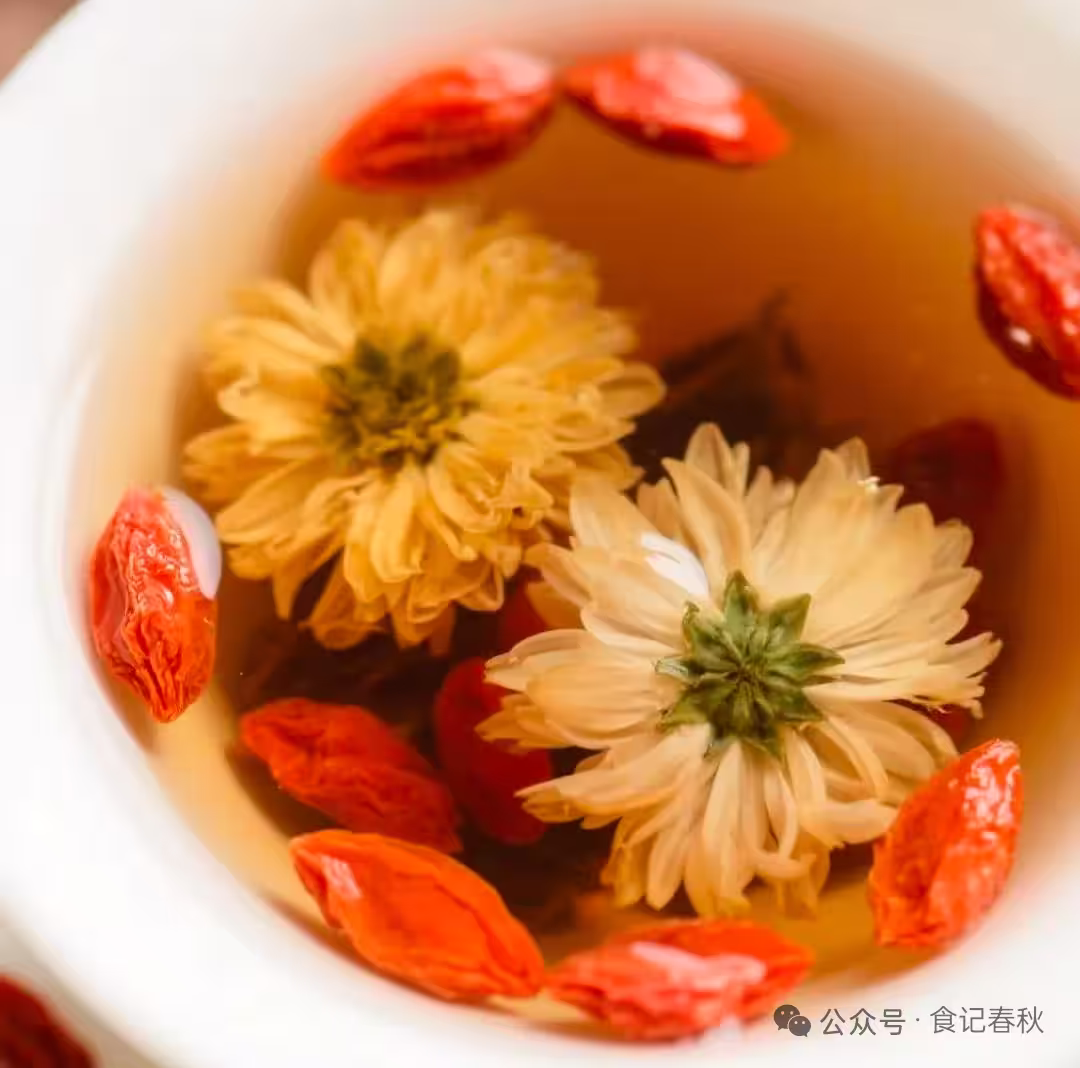 菊花能疏散肝熱,枸杞補肝血,蜂蜜潤肝燥,這杯飲子就像給肝臟「吹吹風、潤潤喉」。泡好後是透亮的淡黃色,喝起來微苦帶甜,比奶茶清爽多了。下午3-5點喝一杯,原本堵在胸口的悶脹感慢慢散開,說話聲音都沒那麼沖了。
