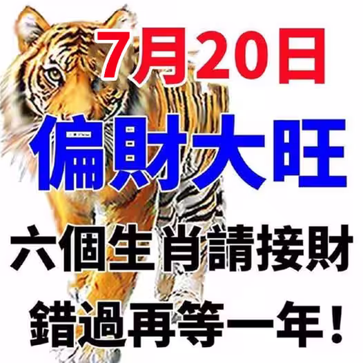 7月20號偏財大旺,六個生肖請接財!錯過再等一年