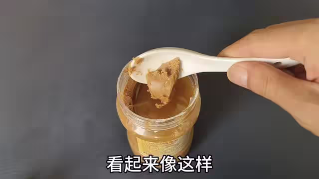 而那樣細膩絲滑又特別香的芝麻醬,到底是怎樣調製出來的呢,其實非常的簡單,這裡我們只需要把芝麻醬給它盛出,然後放入盤子當中,可以看見芝麻醬它是一坨一坨的,根本就弄不下來,還有一點粘。