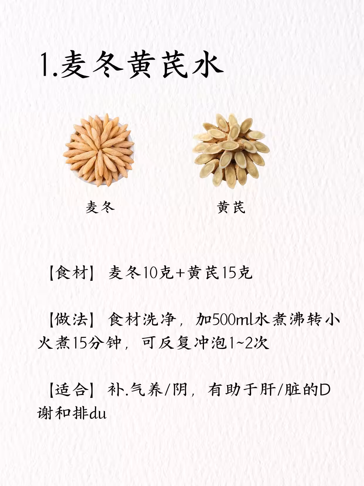 1️⃣ 麥冬黃芪水