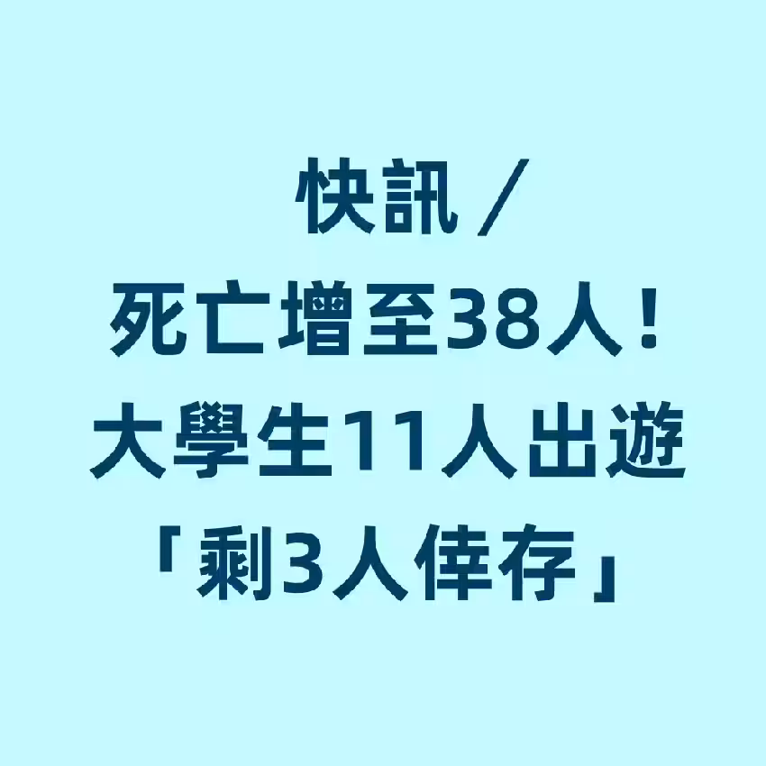 快訊/死亡增至38人!大學生11人出遊「剩3人倖存」