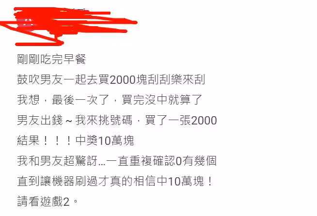 連續兩張都幸運刮中10萬元大獎,很多人都想問到底有什麼秘訣?