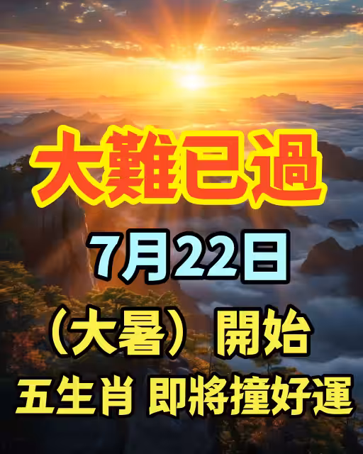 大難已過 7月22日(大暑)開始 五生肖 即將撞好運~