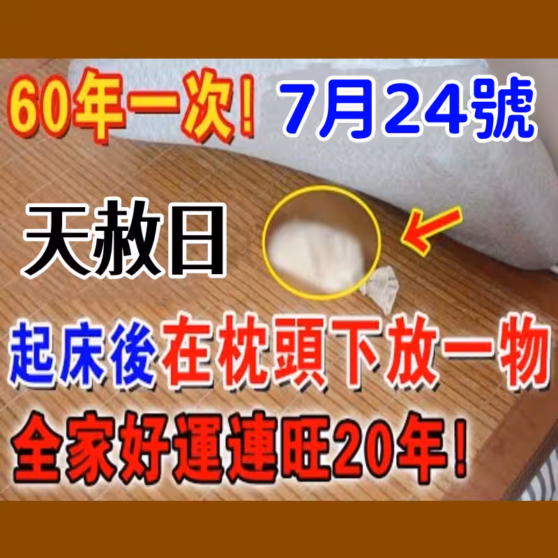⚠️ 不是迷信!就在7月24日「天赦日」,起床牢記在枕頭下放一物,隔天就有橫財降臨!全家好運連旺 20 年!💰🔥