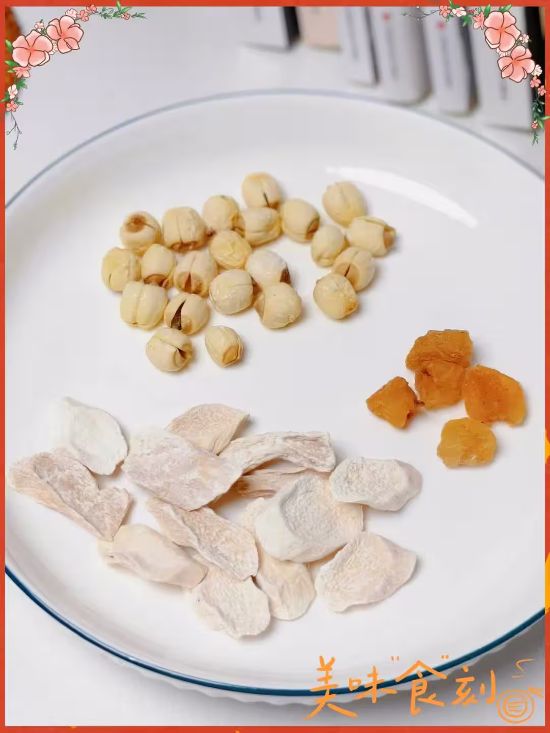 1. 蓮子用水沖一下,桂圓剝殼去核