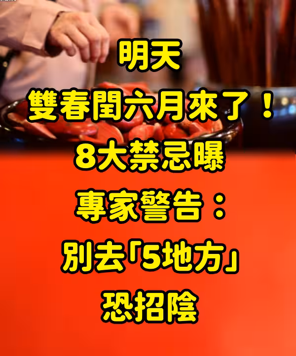 民俗專家楊登嵙指出,本周五(25)日至8月22日正值農曆「閏六月」,這個月份有8大禁忌要特別注意。