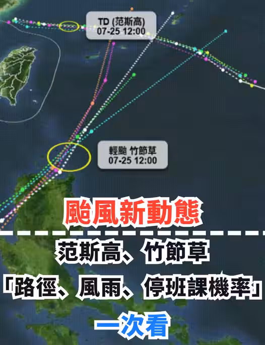颱風動態整理!范斯高、竹節草「路徑、風雨、停班課機率」一次看