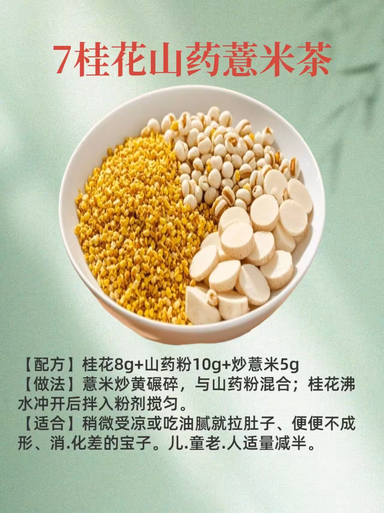 🥔桂花山藥薏米茶:消化差、便便不成形的寶子,試試這款茶。桂花、山藥粉、炒薏米,製作簡單,喝完肚子超舒.暢~