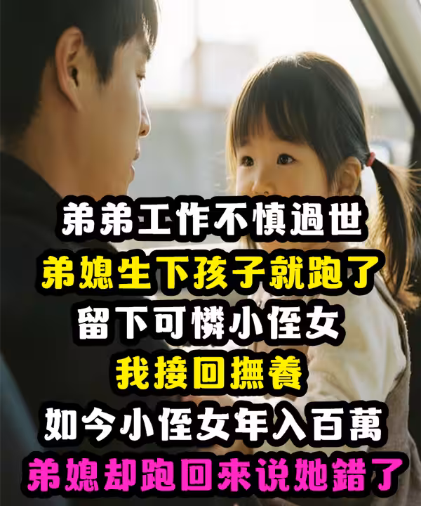 弟弟工作不慎過世,弟媳生下孩子就跑了,留下可憐小侄女,我接回撫養,如今小侄女年入百萬,弟媳卻跑回來說她錯了