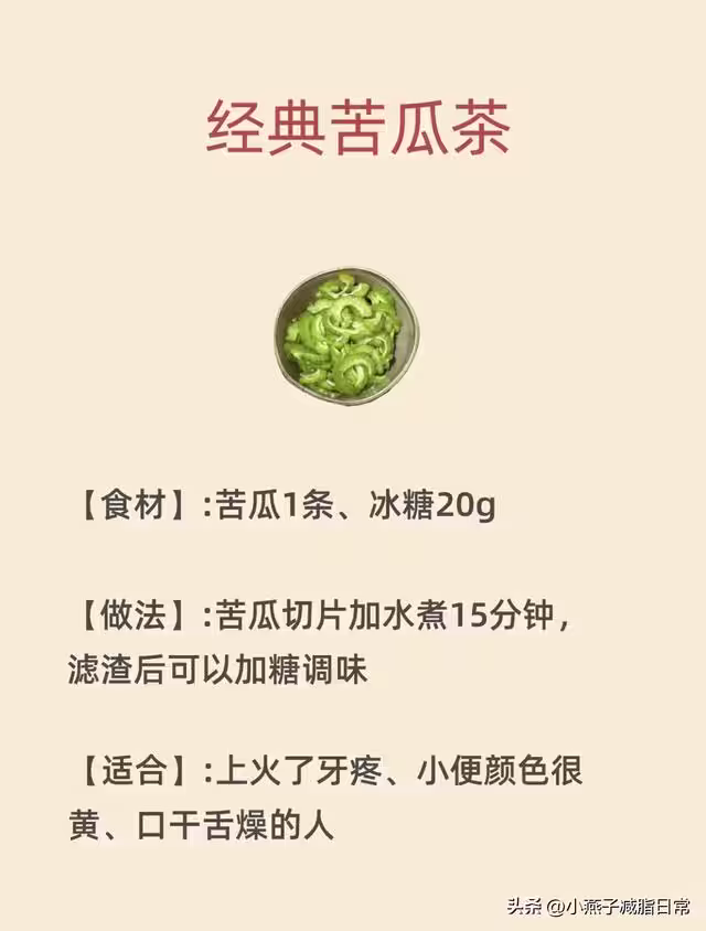 做法:苦瓜切片加水煮15分鐘,濾渣後加冰糖調味!