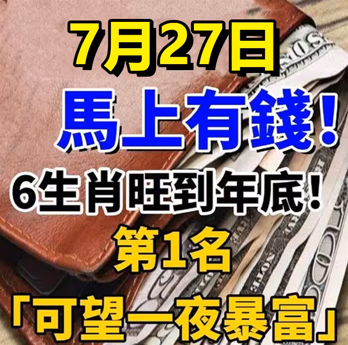 7月27日馬上有錢!6生肖旺到年底!第1名財運狂飆「可望一夜暴富」!