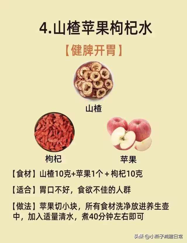 ✔️ 食材:山楂10g + 蘋果1個(帶皮切小塊)+ 枸杞10g(泡軟)!