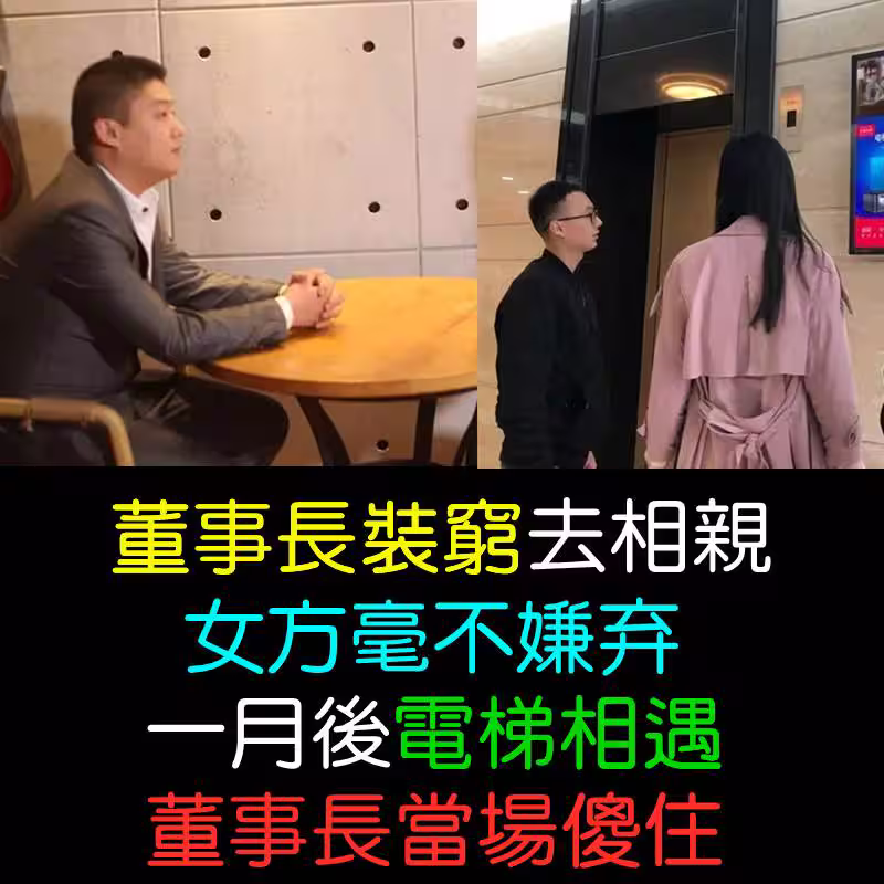 董事長裝窮去相親,女方毫不嫌棄,1月後電梯相遇,董事長卻傻住