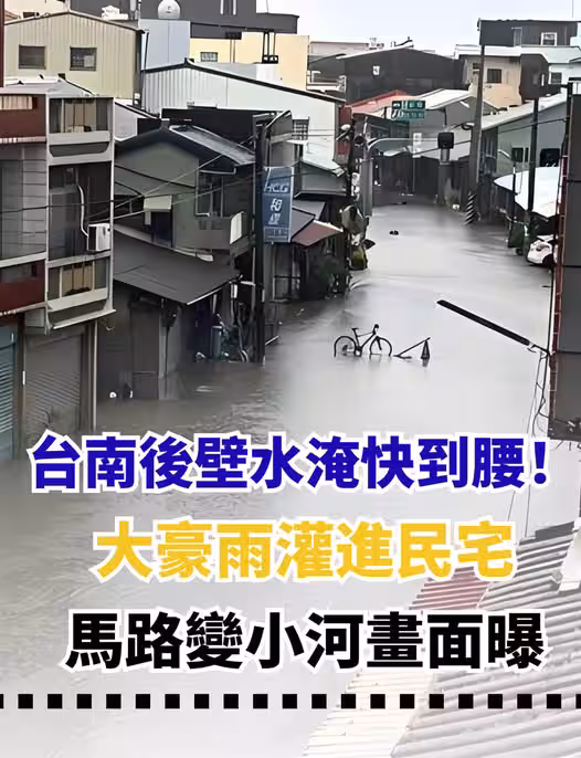 台南後壁水淹快到腰!大豪雨灌進民宅、汽車動彈不得,馬路變小河畫面曝