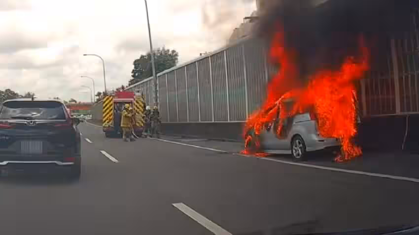 國道火燒車變一團火球! 「車子溫度過高」4人急停路肩逃生