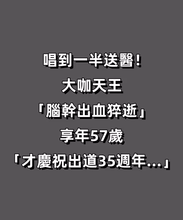 唱到一半送醫!大咖天王「腦幹出血猝逝」享年57歲 「才慶祝出道35周年…」