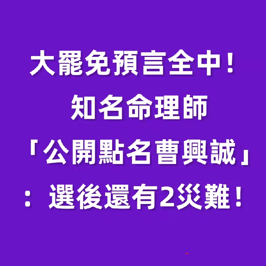 大罷免預言全中!知名命理師「公開點名曹興誠」:選後還有2災難