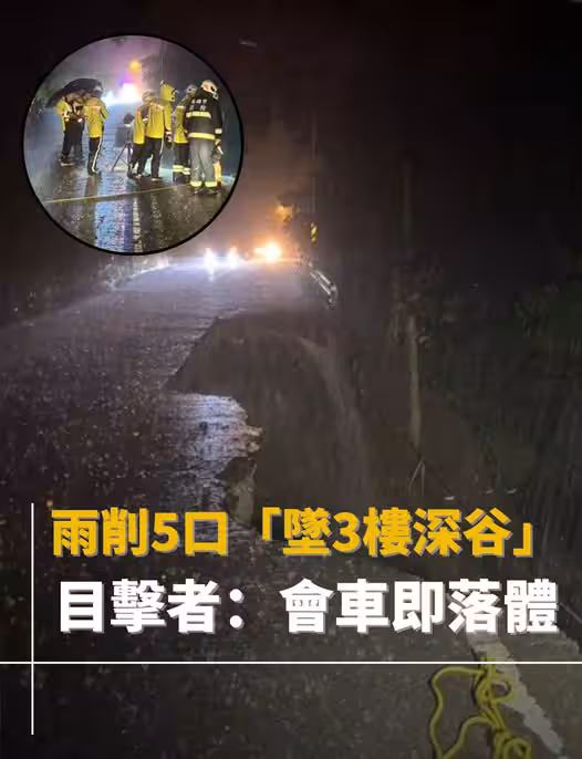 暴雨刀削路塌!一家5口「墜3樓深谷」生死未卜…目擊者:會車即落體