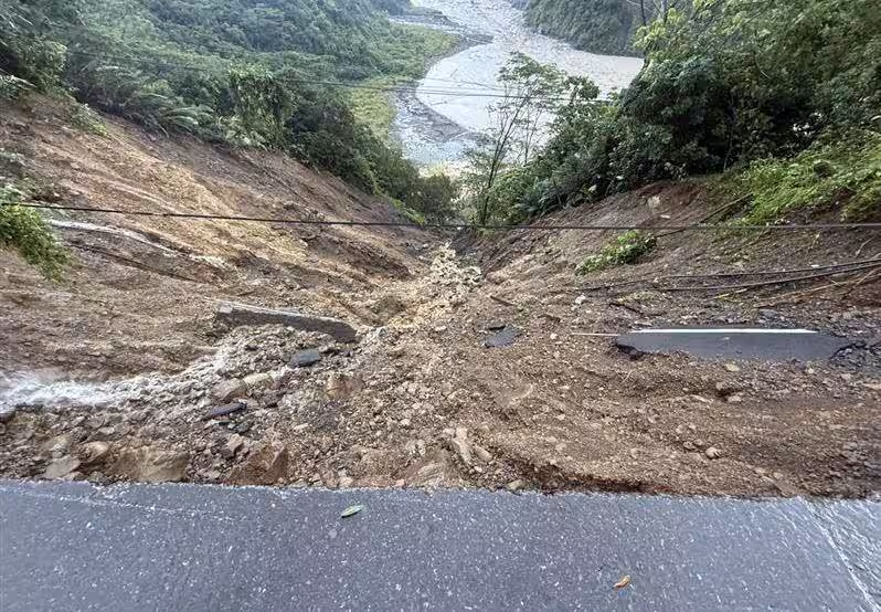 據悉,43歲蔡姓貨車司機,要從桃源區前往寶來,與一家5口會車,大雨視線不佳,NISSAN自小客車調整方向準備繼續行駛,等貨車司機看到對向車道路基已掏空,還來不及提醒,就眼睜睜看著一家子傾斜墜落深不見底山谷;
