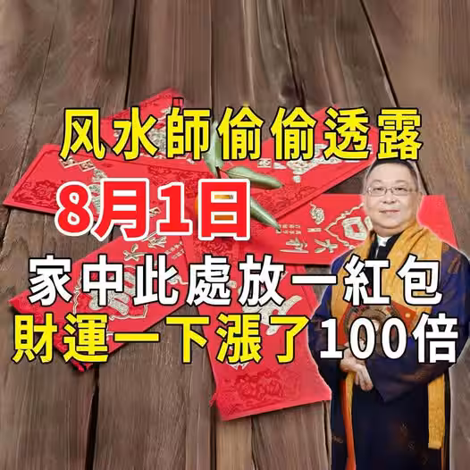 風水師偷偷透露:8月1日在家中這個地方放一個紅包,竟能讓財運100倍暴漲,好運一路旺到底