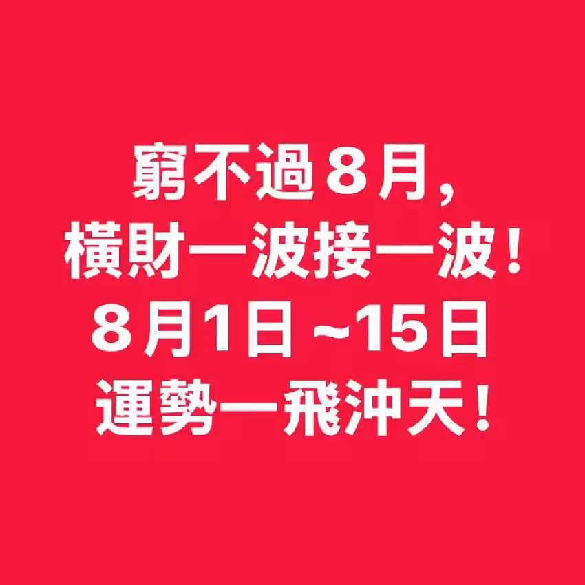 🎯 窮不過8月,橫財一波接一波!8月1日~15日運勢一飛沖天!