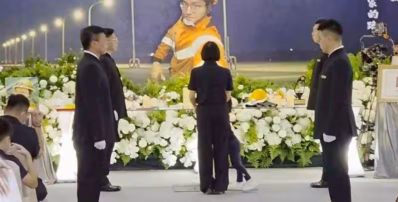 台電英雄告別式/李元瀚幼女懵懂,愛妻抱起鞠躬永別:今生來世永遠愛你