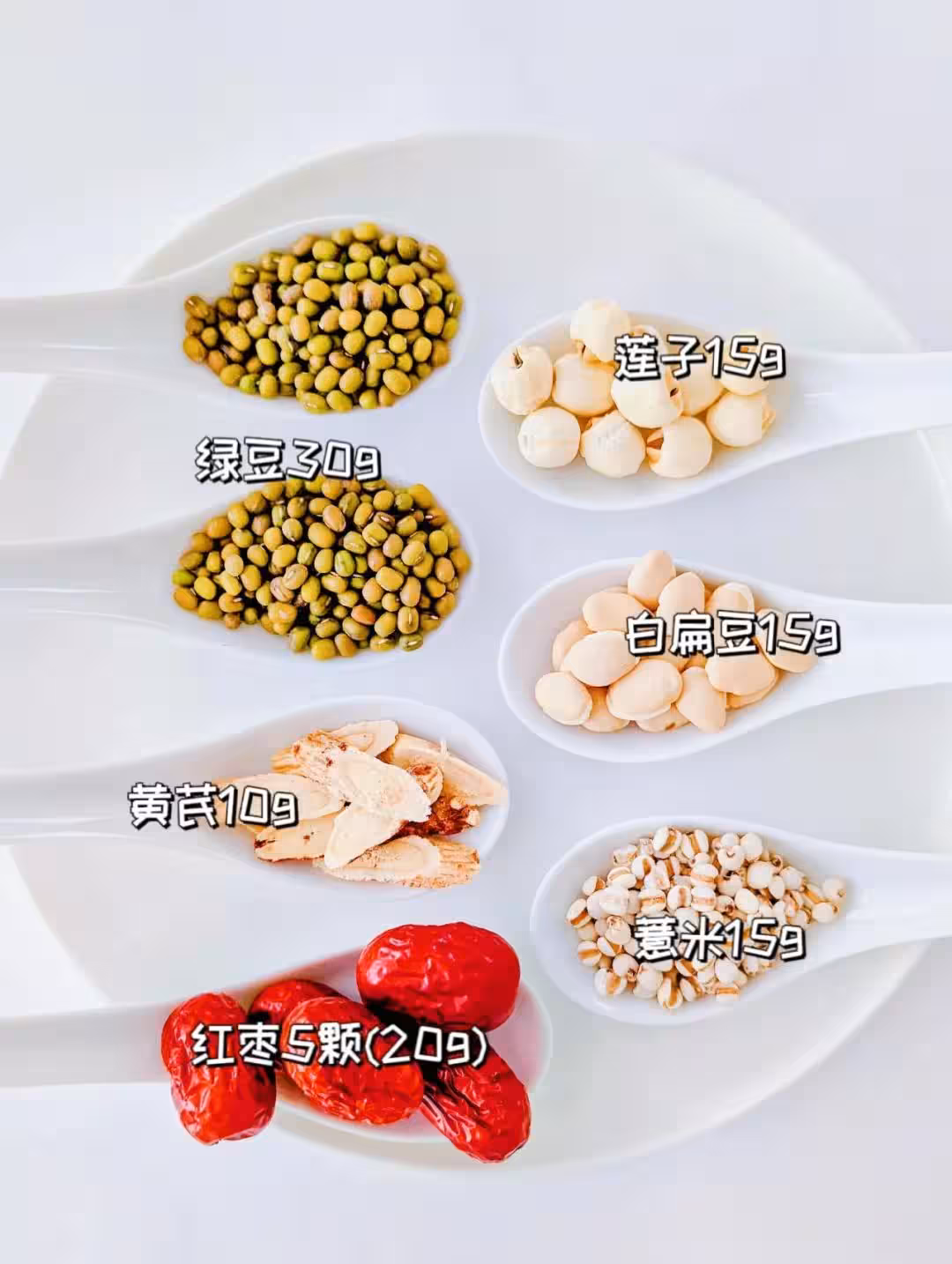 ✅【食材】:綠豆30g, 黃芪10g,薏米15g,白扁豆15g,紅棗5顆20g,枸杞10g