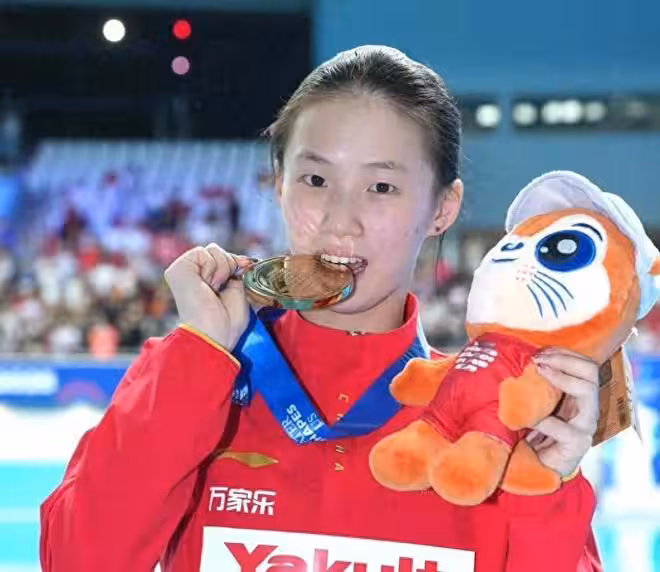 陳芋汐,這位曾被外界戲稱為「千年老二」的姑娘,終於在2025年世界游泳錦標賽的舞台上,以三枚金牌的傲人成績,站上了榮耀的頂峰。
