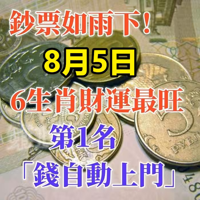 鈔票如雨下!8月5日,6生肖財運最旺,第1名「錢自動上門」!