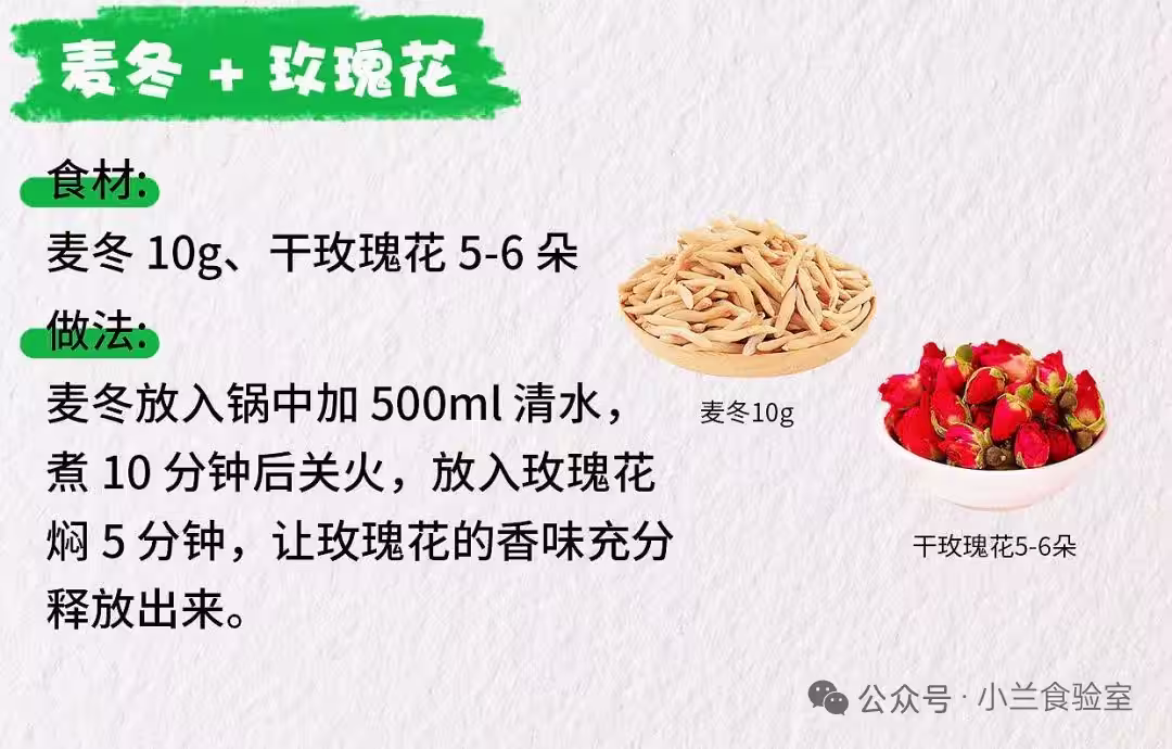 "麥冬10g🌿" + "干玫瑰花5-6朵🌹