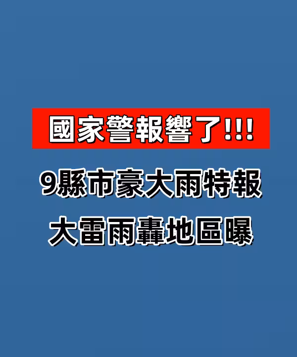 快訊/國家警報響了!!!9縣市豪大雨特報 大雷雨轟地區曝