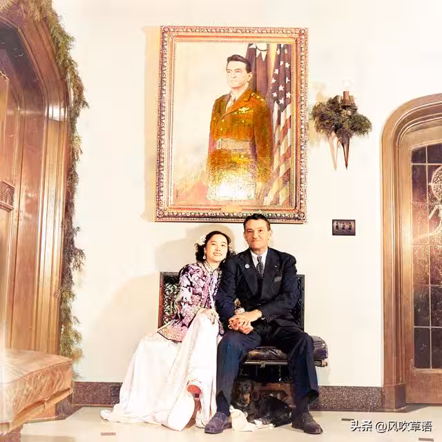 在身穿戎裝的陳納德相框下,花枝招展的陳香梅依偎著丈夫,完全沉浸在新婚的幸福之中。此時,陳納德54歲,陳香梅只有22歲,相差30多年歲數並不能阻擋兩人之間迸發的熾熱情感。