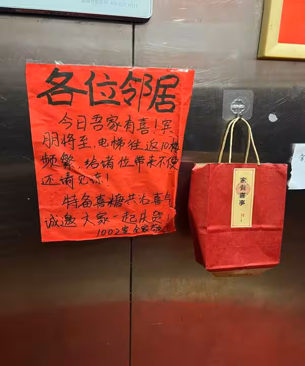 家有喜事!他在電梯「放一大包喜糖」分享喜悅 最後「竟收到兩張紙條回復」網贊爆: 太有愛