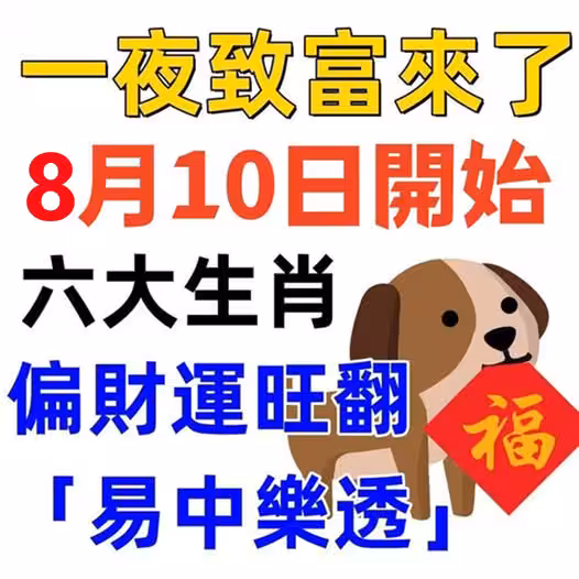 一夜致富來了!8月10日開始偏財運旺翻,六大生肖「易中樂透」