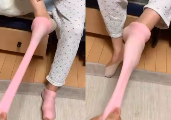 原來阿嬤腳上穿著的,是男生用來解決[生·理·需·求]的「玩具」,乍看之下,還真的非常像襪子,網友馬上衝過去要阿嬤脫掉,視頻中看到,大家都笑成一團,尤其是超有彈性的「襪子」,還直接被拉得超長,讓網友看完都笑翻,直呼:「唉~可見有多保暖啦!」、「建議就送阿嬤看完了!」、「首先看到,阿嬤腳上,有陰影啊!」其實現在社會越來越開放,有時候沒有夥伴,還是可以靠一些「玩具」解決,不過這些東西放在家裡可以收好,不然在保管的家裡,被長輩拿去,卻又不知道要用途的話,雖然很尷尬的!