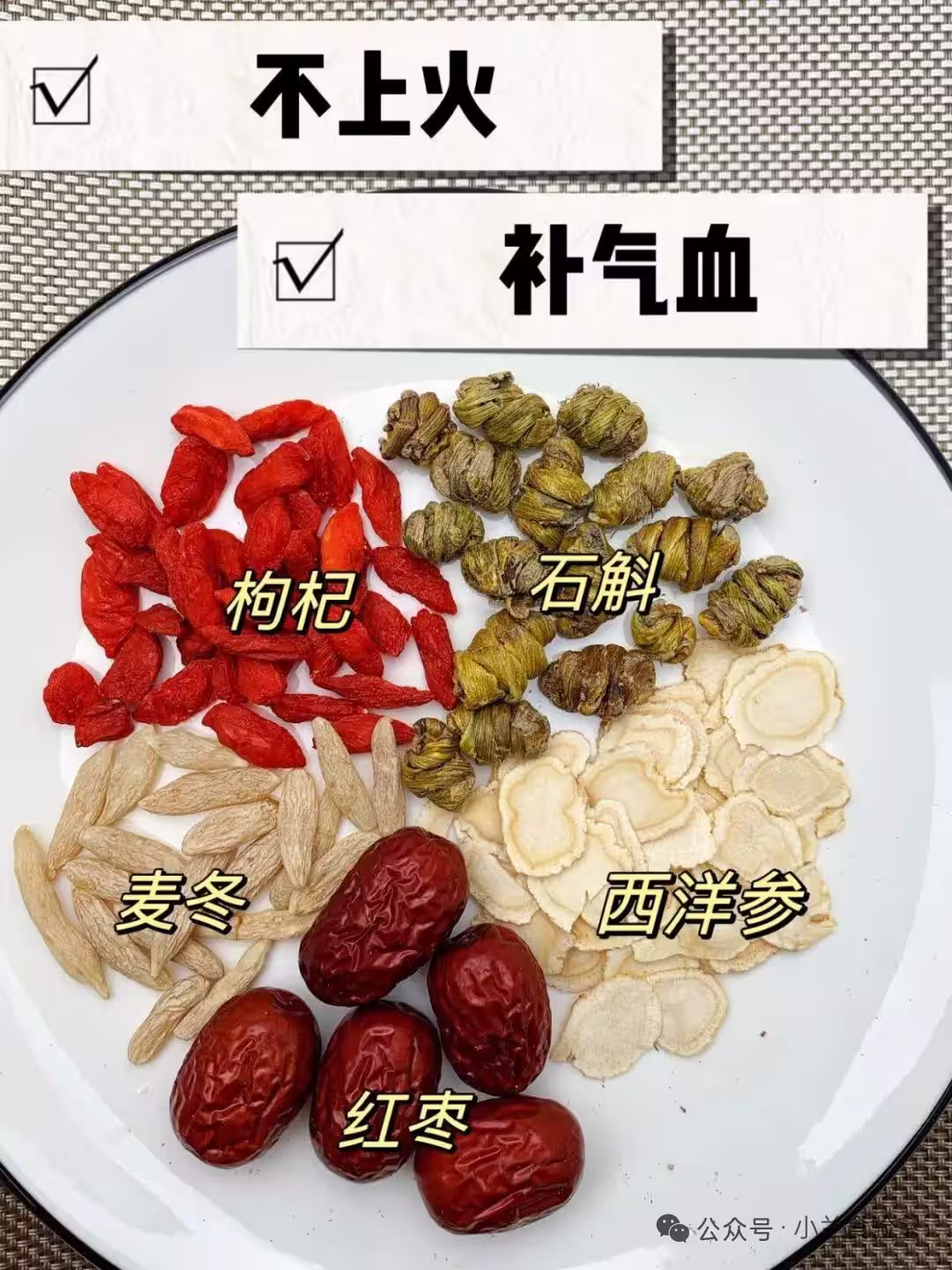 枸杞+石斛+西洋參+紅棗+麥冬