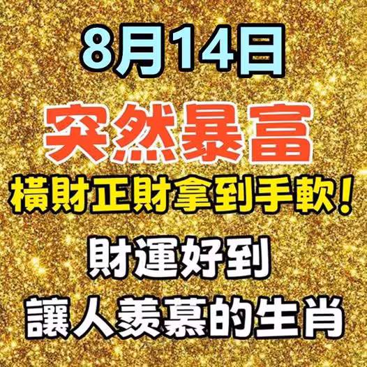 8月14日突然暴富,橫財正財拿到手軟!財運好到讓人羨慕的生肖!